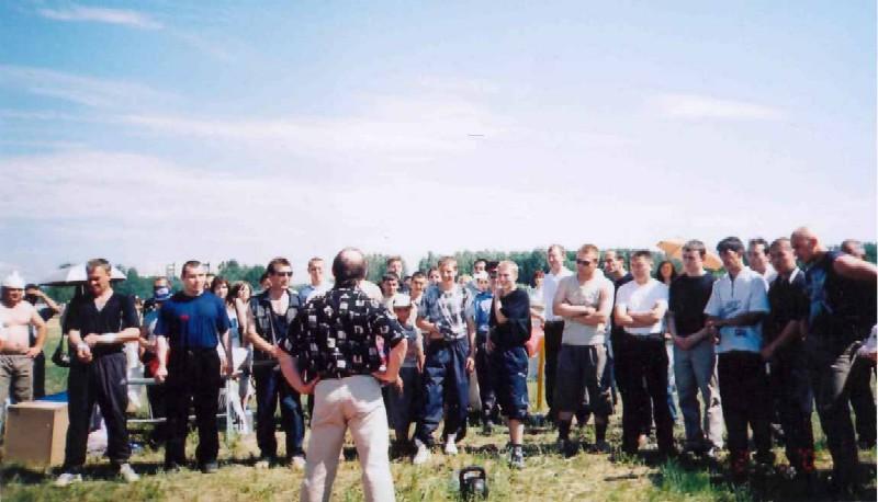 Мастер спорта по гиревому спорту Валерий Попов обьясняет участникам конкурса как надо правильно поднимать гирю.