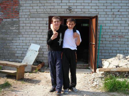 Юные штангисты Асламбек Пайзулаев (слева) и Иса Махмудов возле строящегося зала.