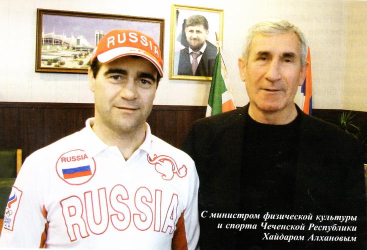 - А ты можешь станцевать "Лезгинку"? - Станцевать смогу, но так, как бы этого хотелось мне, нет. Поэтому я не танцую. - Даже в узком кругу? - В последний раз танцевал давно, еще в юности. - Что ты можешь рассказать о своем народе? - Чеченцы - очень дружный, доброжелательный, мужественный и трудолюбивый народ. В большинстве своем это очень хорошие люди. - О ком бы ты хотел вспомнить? - Очень много делает для восстановления Чечни, продолжая дело своего отца, Рамзан Кадыров, назначенный недавно президентом республики. Восстанавливаются города, строятся дома, объекты культуры, спорта. Вы бы видели, с каким энтузиазмом и радостью перед Новым 2007 Годом люди восстанавливали центральную улицу Грозного! Работали в четыре смены. Чем может, Рамзан Кадыров помогает простым людям: кому-то в лечении, кому-то построить дом. Он делает это от чистого сердца. Большое внимание восстановлению и развитию тяжелой атлетики уделяет президент Федерации тяжелой атлетики, заместитель министра сельского хозяйства Магомед Кадыров, брат первого президента Чеченской Республики Ахмата-хаджи Кадырова, и министр спорта Хайдар Алханов. Большую помощь мне оказывает Руслан Балаев. И словом, и делом старается решить любую проблему. Стараются поддержать бывшие штангисты.