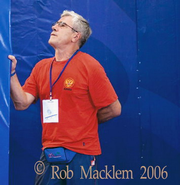2006 год. Чемпионат мира в Санто Доминго. Главный тренер сборной России Давид Ригерт наблюдает за выступлением чеченского штангиста Асламбека Эдиева. |