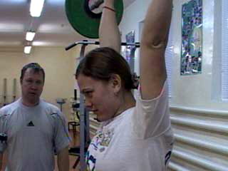 Она улыбается на прощание и дальше поднимает штангу. Тренер уверенно