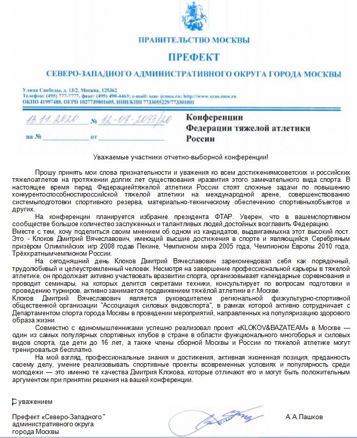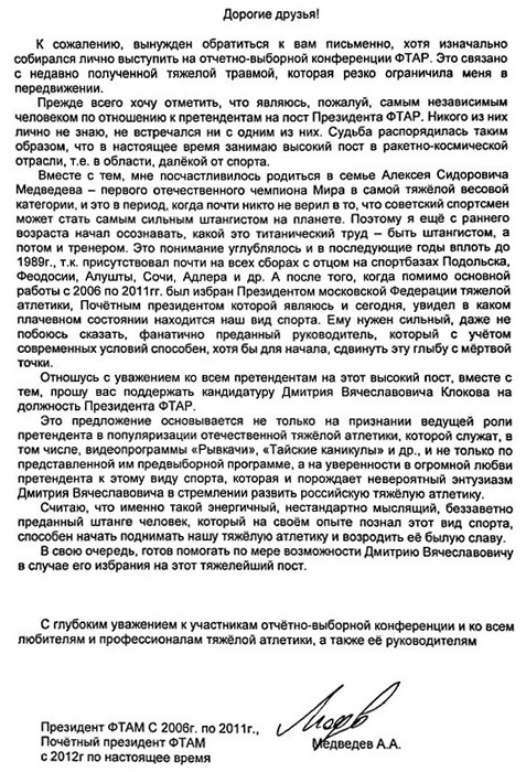 в президенты ФТАР, а в последний день октября показал тяжелоатлетической