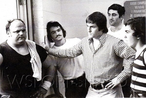 | Знаменитый бельгийский тяжеловес Серж Рединг в США. Совместные тренировки, Джеф справа на заднем плане. 1974 год. |