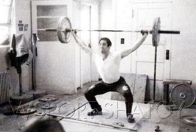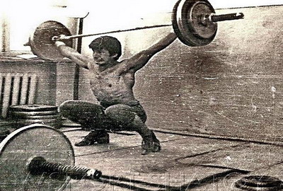 1977 год, Шатой, СССР. Я тренируюсь в рывке на 105 кг. |